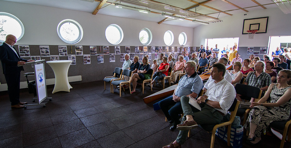 Die Entwicklung des Vereins über 10 Jahrzehnte mit allen Höhen und Tiefen, mit seinen Umbrüchen und wieder sportlich sehr erfolgreichen Zeiten wurde durch eine Videoinstallation, eine Vielzahl von Fotos an den Wänden und Aufstellern und durch die Festrede veranschaulicht.